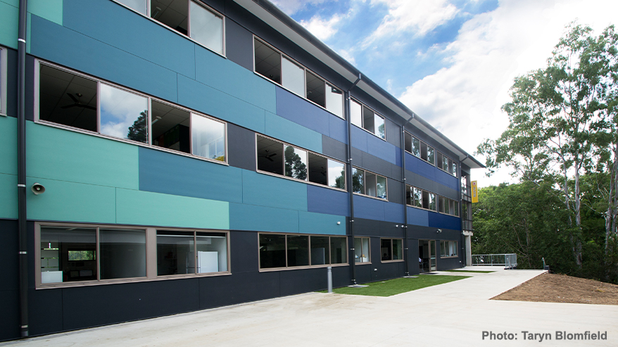 RMA worked alongside Fulton Trotter Architects to deliver three new buildings for Ambrose Treacy College as part of their Senior School Masterplan. The buildings took design inspiration from the surrounding fora and scenery of the Brisbane River, including a curved building that wrapped and weaved through the eucalyptus and rain trees.